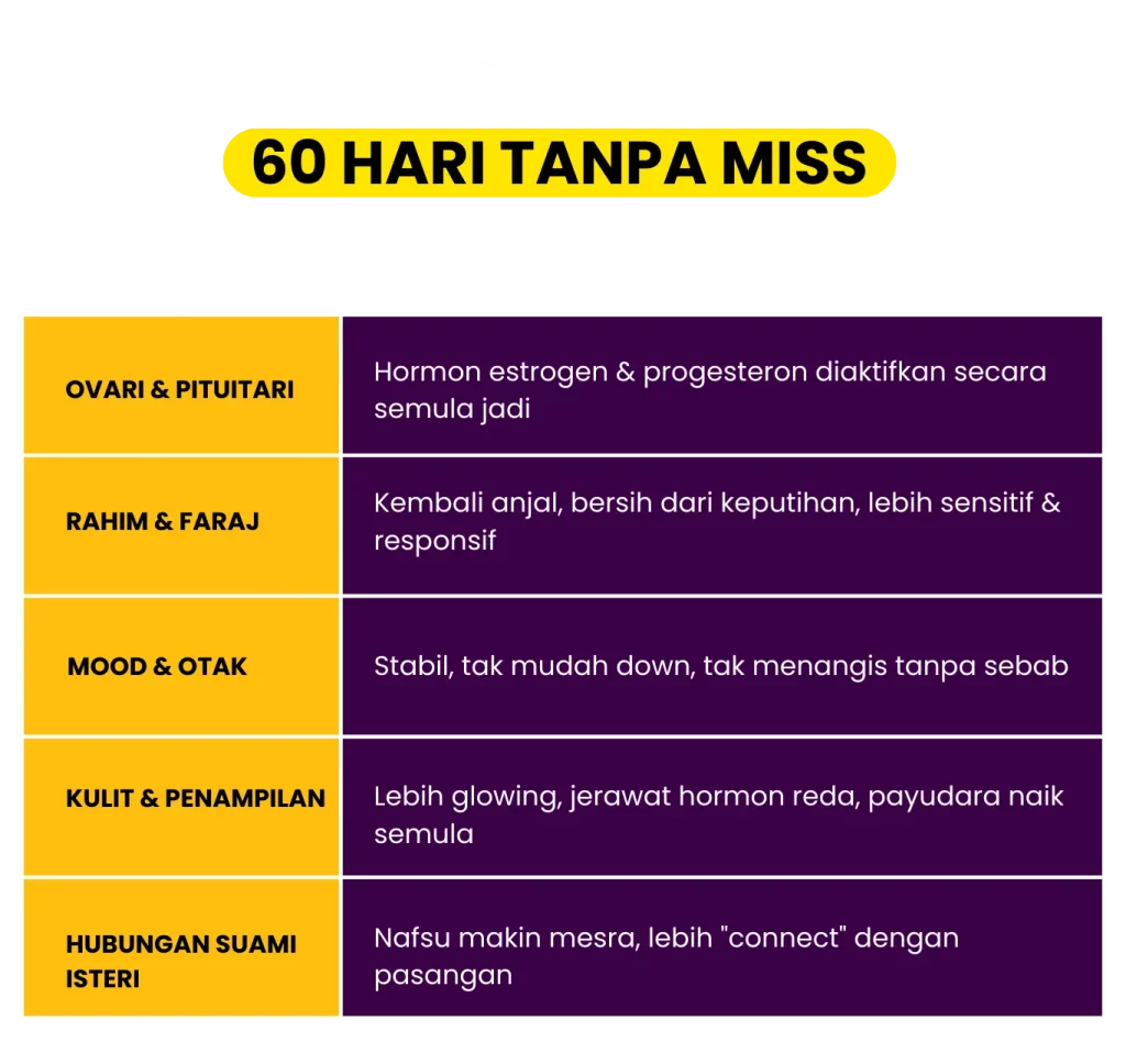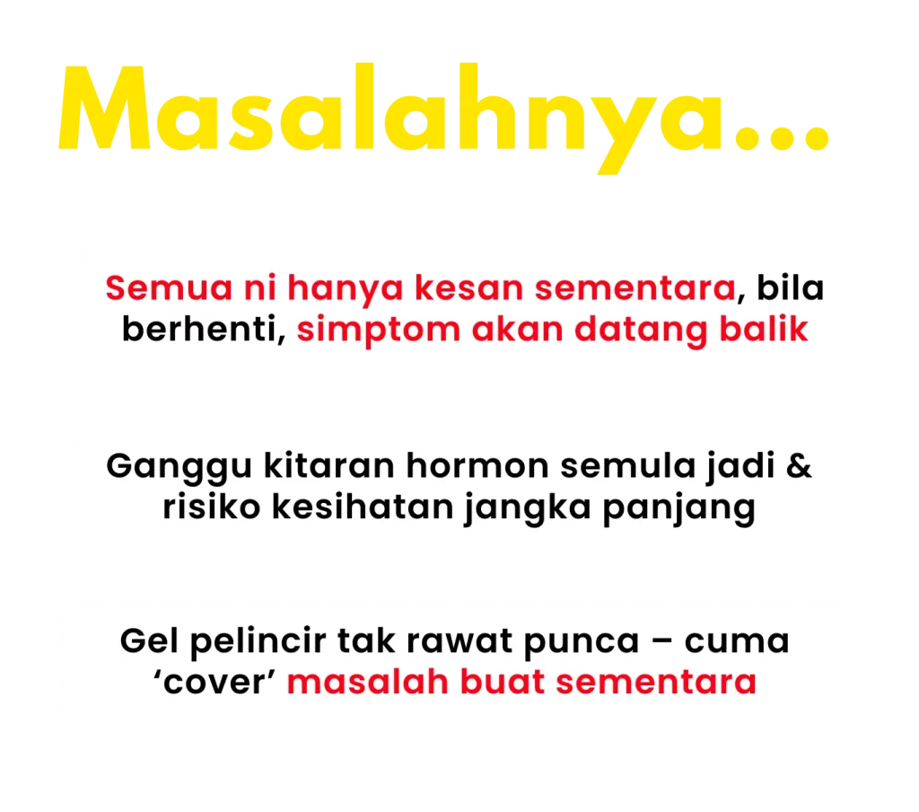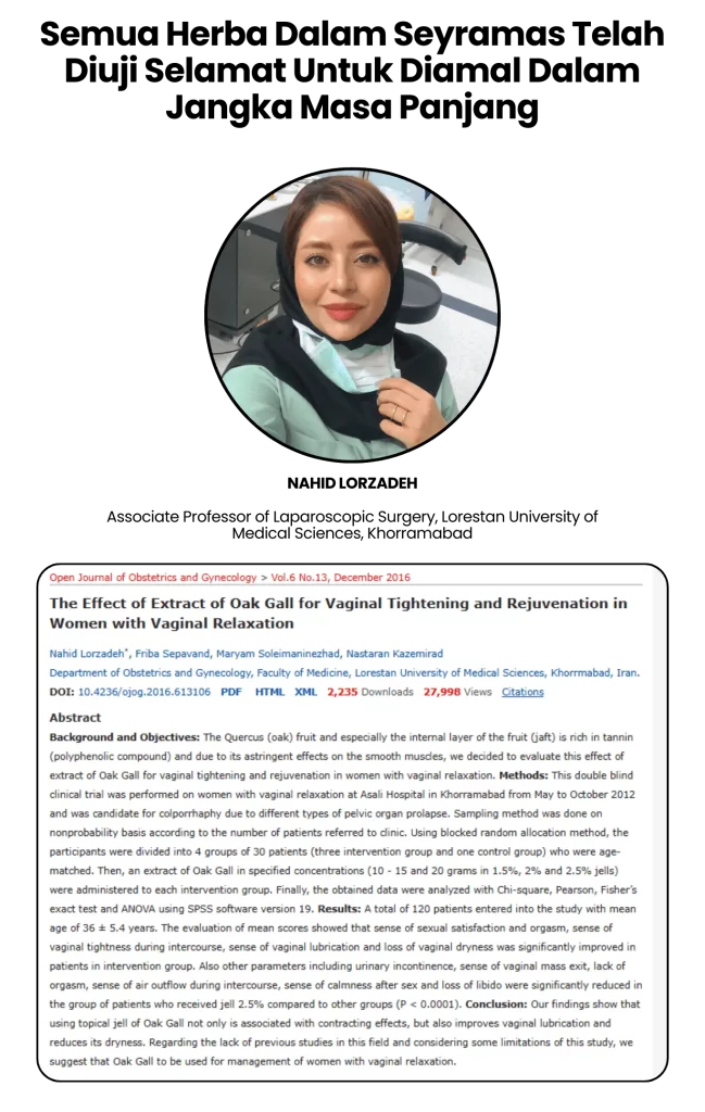 Kini telah ada banyak penemuan terbaru. Jadi apabila bermain dengan teknologi dan ramuan baru. Kita pasti akan timbul keraguan. Tetapi setelah 6 tahun kajian klinikal yang dijalankan oleh Dr Hanim Rohizi. 8 dari 10 penghidap masalah wanita dapat lihat keputusan yang sangat menakjubkan.