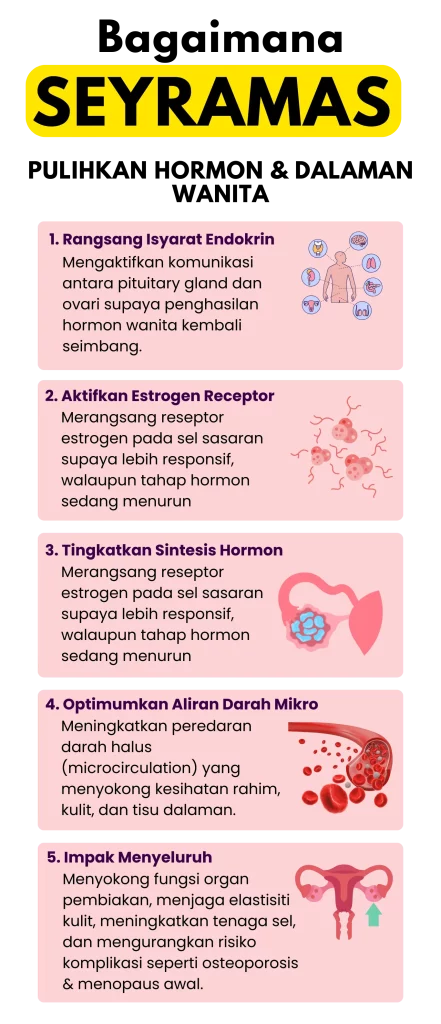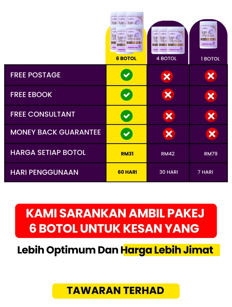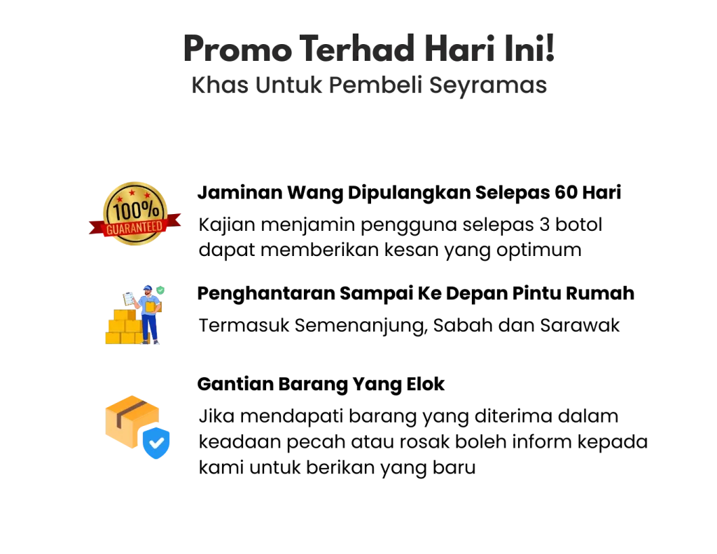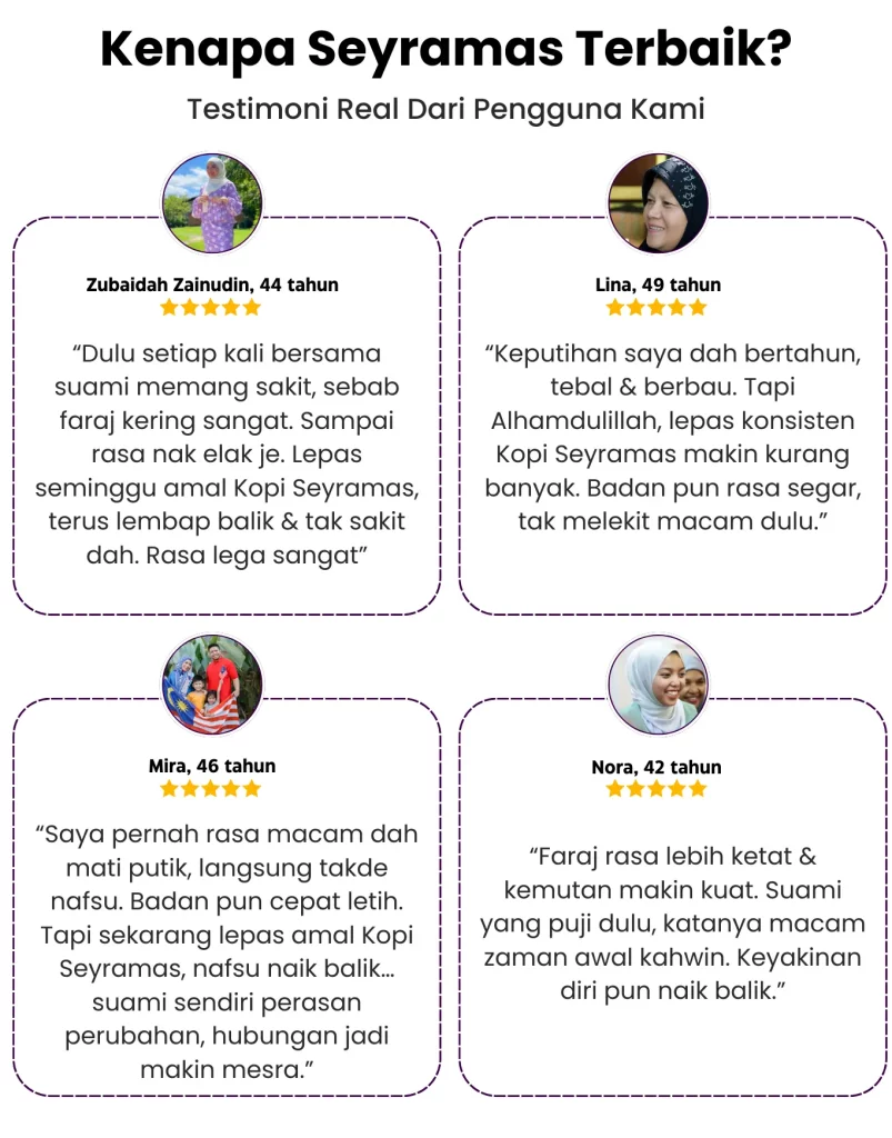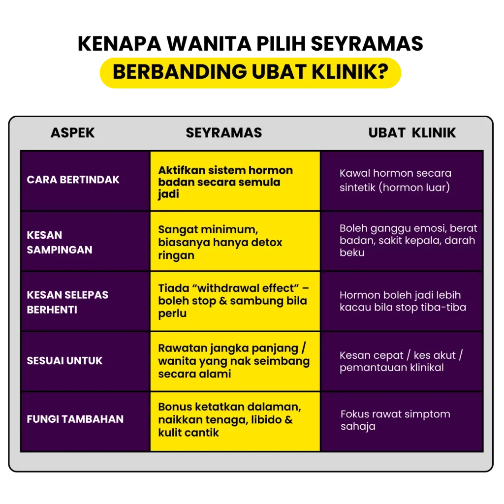 Ini disebabkan teknologi Nano Swiss mRNA Kopi Seyramas dan gabungan formula herba yang lengkap iaitu Mas Cotek, Manjakani, Akar Serapat & Ginseng Wanita.